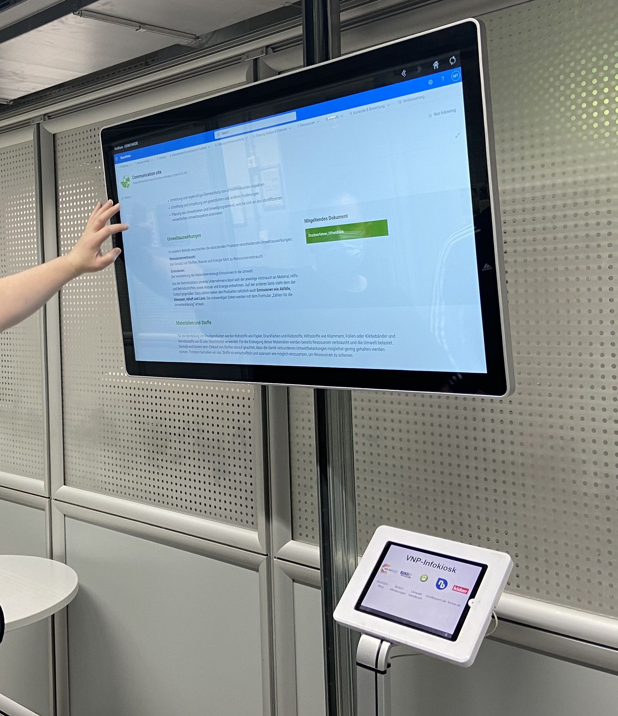 Damit die Beschäftigten sich jederzeit über Umwelt- und Nachhaltigkeitsthemen informieren können, finden sie die Umweltmanagementinformationen im Intranet des Verlages. Wer nicht am PC oder Laptop arbeitet, sondern in den Produktionsbereichen, hat die Möglichkeit sich über großformatige Touchscreen-Bildschirme im firmeneigenen Intranet zu informieren. Außerdem informiert und motiviert ein Umwelt-Newsletter regelmäßig über neue Projekte. Hier sind auch die Auszubildenden aktiv eingebunden, z.B. durch die Gestaltung von Plakaten (siehe links).